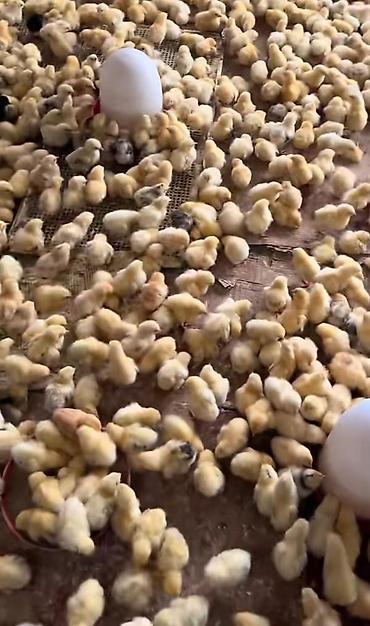 Məhsul: Broyler cücələri (ətlik) - Rəng: ağ (bəzi qəhvəyi fərdlər də var) - Növ: ətlik broyler toyuqları - Qidalanma: qarışıq yem üçün uzun yemliklər və asma suvarma qabları ilə saxlanılır - Yaş qr...