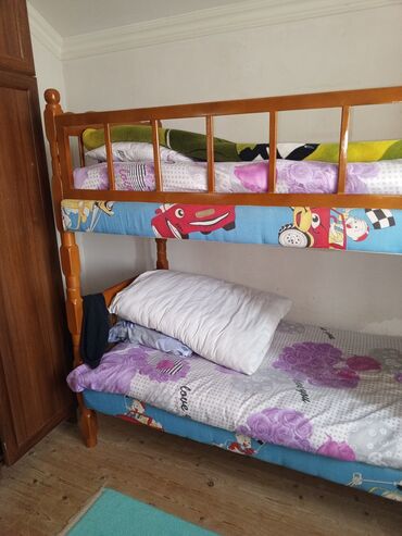 İki mərtəbəli uşaq çarpayısı - Dizayn: ağ və ağac tonu kombinasiyası