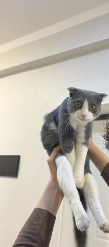 Scottish Fold Erkek pisik Bala qarsiliginda - Cins: Scottish Fold (qulaqları qatlanmış) - Rəng: boz-ağ bicolor – sinə, pəncələr və burunüstü ağ, bədən boz - Gözlər: kəhrəba rəngli, iri və ifadəli -...
