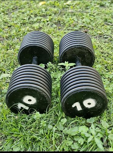- Çəkilər: hər qantelin uclarında “10” işarəsi var (təxminən 10 kq göstərilib).