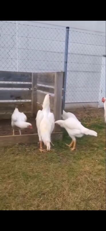 - Tamamilə ağ lələklər, qırmızı başlıq və daraq, sarımtıl ayaqlar