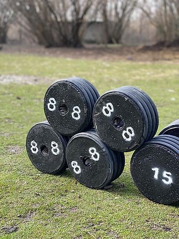 - Ağırlıq variantları: 8 kq, 15 kq, 20 kq, 36 kq (hər diskin üzərində ağırlıq rəqəmlə qeyd olunub)