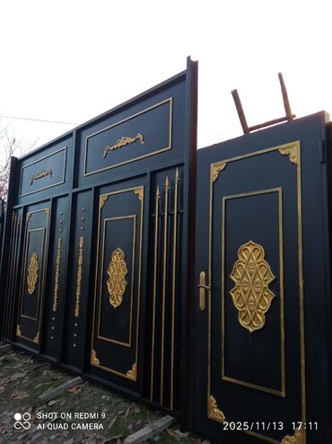 Məhsul: Metal qapı - Rəng: Tünd boz/qartal qara tonunda - Dizayn: Minimalist şaquli panelli görünüş, ön hissədə iki ədəd qızılı rəng vurğulu dekorativ zolaq və uyğun tutacaq - Quraşdırma növü: İki...