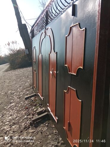 Dekorativ metal darvazalar və giriş qapıları - Material: metaldan hazırlanmış, dekorativ relyef və qızılı ornamentlər, rəngli panellərlə kombinasiya olunmuş dizayn - Komplektlər: 1) İkiqanad dar...
