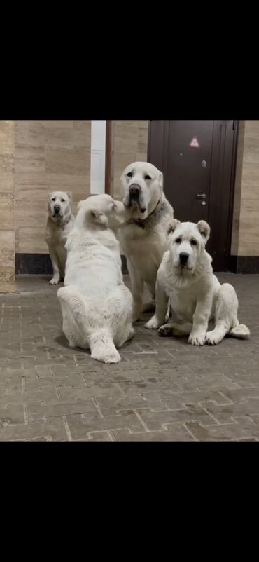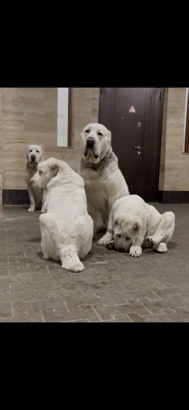Məhsul: Orta Asiya çoban iti (Alabay) – ağ rəngli balalar və yetkin itlər Xüsusiyyətlər: - Cins: Orta Asiya çoban iti (Alabay) - Rəng: Tam ağ - Balalar və valideynləri birlikdə göstərilib - Güclü ...