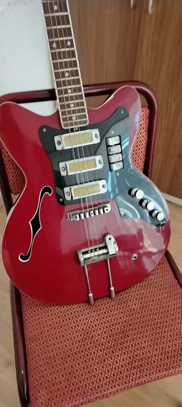 Elektrik gitar – Sovet dövrü “Tonika”/“Ural” tipli yarım-korpus (semi-hollow) model Xüsusiyyətlər: - Korpus: yarım-akustik, iki “f”-formalı rezonans deşiyi - Rəng: qırmızı-siyah sunburst - Boyun: ...