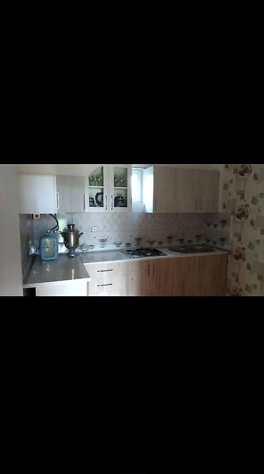 - Mətbəx: müasir dolablar, şüşəli vitrinlər, qaz plitəsi, ikiqablı iş səthi (ocaq və moyka zonası), divar boyu keramika üzlüklər, pəncərə ilə havalandırma.