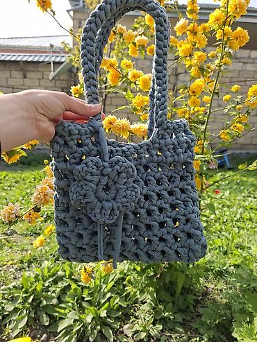 Əl işi toxunma çanta - Material: qalın, yumşaq trikotaj ip (t-shirt yarn). Möhkəm toxuma sayəsində formasını saxlayır, deformasiya etmir. - Dizayn: mini top-handle siluet; dəyirmi, dolğun ilmələr;...