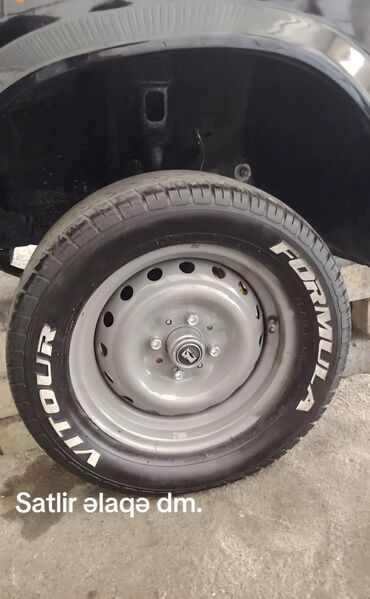 Şəkildə göstərilən komplekt təkər+disk şəklindədir. Yazıda: “Satılır, əlaqə dm.” qeyd edilib.