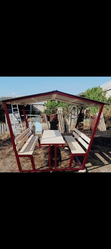 Dördbucaq masa, Açılmayan, Skameykalar ilə, Metal