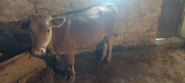 Satlıq buzov - Növ: iri buynuzlu heyvan, buzov - Rəng: açıq-qonur (qəhvəyi) tonlarda, alnında açıq ləkələr - Yun örtüyü: qalın və dalğalı, soyuğa dözümlü - Qulaqda nişan/etiket görünür - Bədən qur...