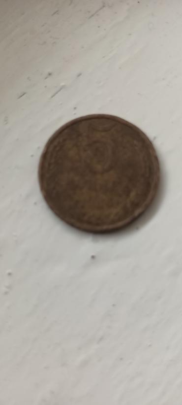 Kolleksiya üçün köhnə pul sikkəsi - Növ: 5 nominal dəyərli metal sikkə - Material: mis/bronz tonlu ərinti - Rəng: tünd mis - Forma: dairəvi, qaldırılmış kənar haşiyə - Üz tərəfi: mərkəzdə iri “5” ...