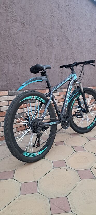 - Geniş profilli 26" təkərlər, şinlərdə dekorativ “adidas” yazıları