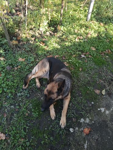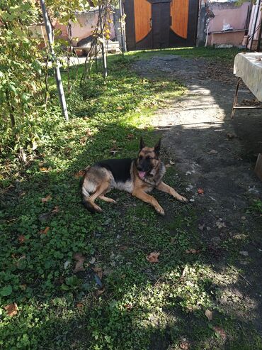Alman çoban iti (German Shepherd) - Orta-böyük ölçülü, güclü bədən quruluşu - Qara-qəhvəyi rəng palitrası, sıx ikiqat tüklü örtük - Düz qulaqlar, uzun quyruq, ifadəli ağız-burun quruluşu - Həyətdə...