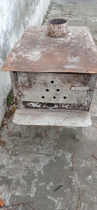 Ağır metal yanacaq sobası (çörək/taxta kömürü üçün ocaq korpusu) - Material: qalın divarlı polad - Korpus: düzbucaqlı, dörd tərəfi qaynaqla möhkəmləndirilmiş - Ölçü təxmini: 75sm hündürlük, 35–40 ...