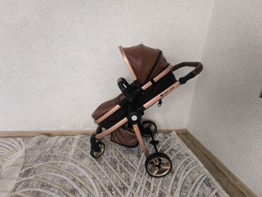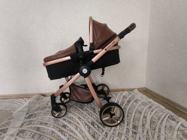 Uşaq arabası – bebekon tipli, yataq səbəti ilə - Rəng: tünd boz/krem-qızılı şassı - Dönər şassi: oturacaq/səbət valideynə və ya irəli baxacaq şəkildə çevrilə bilir - Geniş, dərin beşik tipli səbət...
