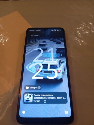 - İstismar: kilid ekranında avtomobil temalı fon, bildirişlər və hava proqnozu vidjeti görünür