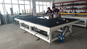 Ödənişli çatdırılmaŞüşə kəsmə və yığma üçün pnevmatik qaldırma funksiyalı peşəkar iş masası