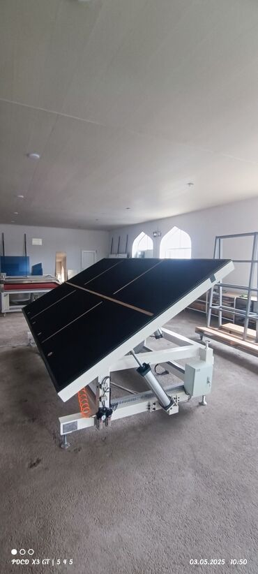 - Konstruksiya: ağırmetallı karkas, geniş formatlı iş səthi (şüşəni qoruyan qara örtüklü panel), dayanıqlı tənzimlənən dayaqlar.