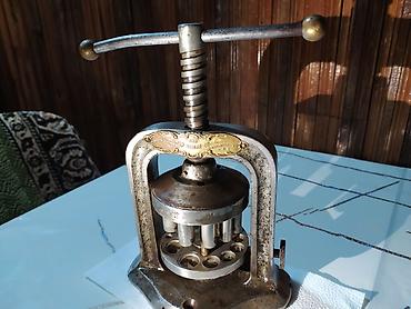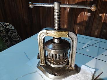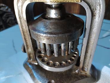 W.M. Sharp Co. (Binghamton, N.Y., USA) istehsalı əl pressi – çoxlu deşikli başlıqla metal lövhələrdə və ya boş formalarda dairəvi kəsiklər açmaq üçün nəzərdə tutulmuş mexaniki dəlik açma/kəsmə cihazı.