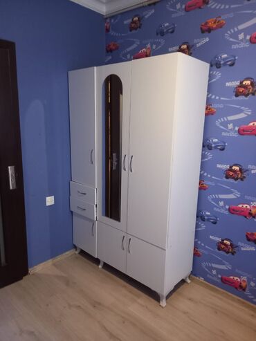 Ağ rəngdə olan bu qarderob, yataq otağına zəriflik qatır. Birbaşa istehsaldan satisdi 160*200*45olcude 4qapili dolab cemi 260azn catdirma əlavə ödənişlə mümkündür.reng seçimi var (acar,dekor elave...