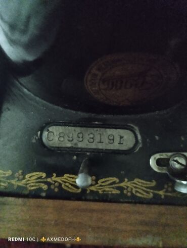 - Klassik, mexaniki tikiş maşını, metal gövdə və əl fırladan volan mexanizmi ilə.