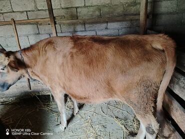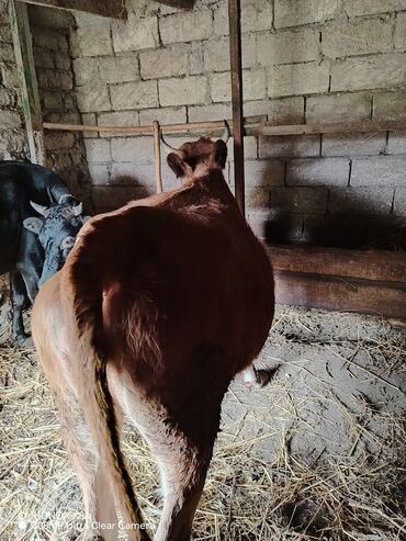 Süd istiqamətli inək Qarnında 7 aylıq balası var. 2 ci qarındl - Rəng: qəhvəyi, bədəndə ağ ləkələr - Buynuzlu, qısa buynuzlar - Sağlam, çevik bədən quruluşu, düz bel xətti - Otlaq şəraitinə uyğun, ...