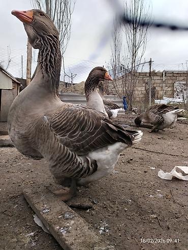 Qazlar satılır – 1baş - Növ: ev qəzləri - Rənglər: ağ, boz və qəhvəyi qarışıq tüklü - Sayı: 1 eded - Şəkildə olanların hamısı birlikdədir - Qanadları geniş, bədənləri iri; həyət şəraitinə, açıq mə...