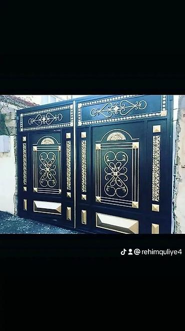 Şəkillərdəki modellər oxşar üslubda hazırlanmışdır: qara-qızılı və krem-qızılı kombinasiya, yuxarı dekorativ friz və mərkəzi naxışlı panellər. Həyətyanı sahənizin girişinə həm möhkəmlik, həm də nümayişkaranə görünüş qatır.