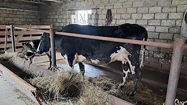 Heyvan ikinci balanı doğub, iri nəhəng heyvandır, tona yaxın çəkisi var, danası süni mayalanma erkəkdir. Hal hazırda 18-20 lt arasında səhər-axşam sağıb təhvil verə bilərəm.Ötən balada aparatla da...