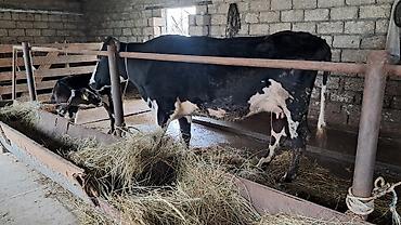 Süd inəyi buzağısı ilə birlikdə - Cins: qarayara alacalı süd istiqamətli inək - Şəkildə göründüyü kimi buzağı əmizdirir - Sağlam, iri bədən quruluşlu, geniş döşlü - Stabil süd istehsalı üçün uyğun...