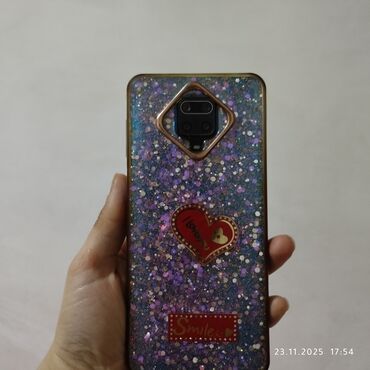 - Qoruyucu keysi: parıltılı-bənövşəyi mavi rəng efektli, üzərində “I love you” yazılı ürək stiker və “Smile” yazılı etiket. Kameranı əhatə edən qızılı çərçivə ilə uyğunlaşır.
