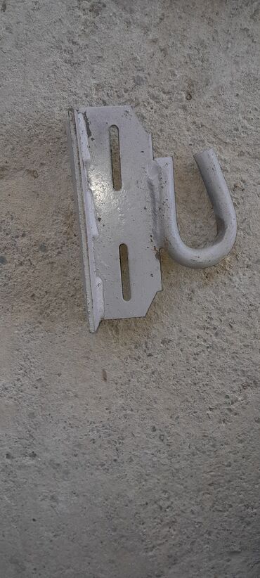 • Şkaf/perde kelepçəsi və ya asqı üçün metal kronşteyn – uzun dəlikli montaj yeri və qarmaq formalı tutacaqla.