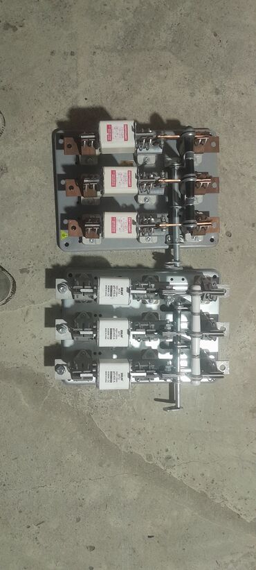- 3 fazalı bıçaqlı sığortalı ayırıcı komplektləri: metal baza üzərində 3 ədəd yüksək sürətli sığorta ilə (NH tipli), mexaniki qolu/çubuğu ilə eyni vaxtda açıb-bağlama imkanı. Güclü mis kontaktlar, boltlu birləşmələr, panelə və ya şkafın içində montaja uyğun.