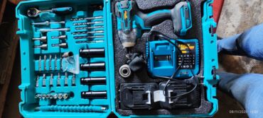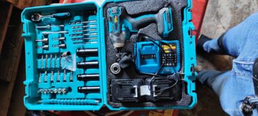Akkumulyatorlu zərbəli bolt açarı (udarno-akkumulyator tork açarı) dəsti. Xüsusiyyətlər: - 1/2" kvadrat ucluq – avtomobil təkər boltları və konstruksiya bərkidiciləri üçün uyğun - Ergonomik rezinl...