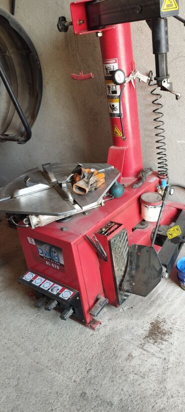 - Təkərsökən aparat: DALI DL-620 tipli pnevmatik təkərsökən. Fırlanan stol, mexaniki sıxac çənələri, boncuk qıran qol, pedallı idarəetmə. Manometrli hava xətti, yağlayıcı-filtr bloku, sprey uclu şlanq, metal iş masası və alət üçün yuvalar. Miniven/sedan/SUV tipli disklərlə işləməyə uyğun standart ölçü aralığı.