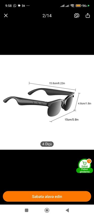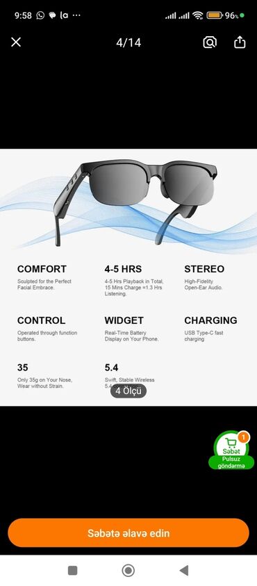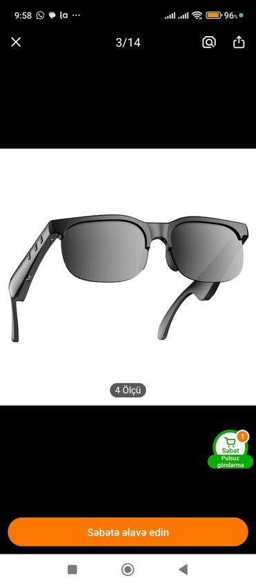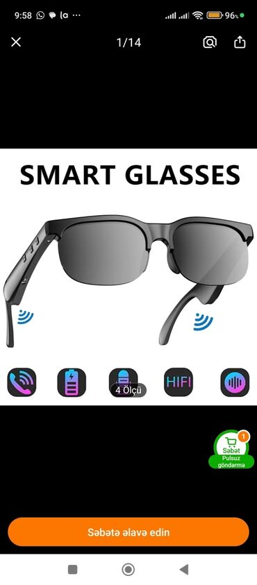 Ağıllı eynək. Blutuzla işləyən qulaqcıqlı eynək. Bütün model telefonları dəstəkləyir. Siz həm telefonla danışa bilərsiniz, həm də sosial şəbəkələrdə vaxtınızı keçirə bilərsiniz. Həm hərəkətdə olark...