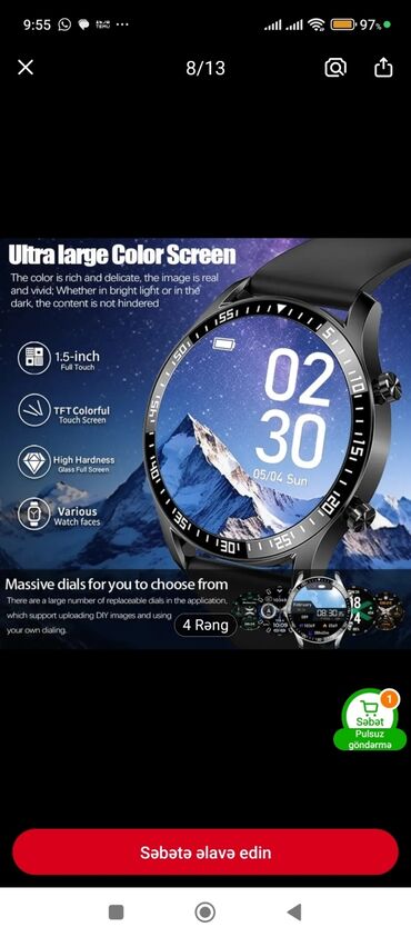 - Çoxlu saat üzü: tətbiq vasitəsilə dəyişdirilə bilən müxtəlif dizaynlar, şəxsi şəkilləri yükləyib fərdiləşdirmə imkanı.