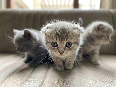 Brit qıvrım tipli balaca pişiklər - Cins: Şotland qıvrım/qulaqlı (Scottish Fold) və düzqulaq (Scottish Straight) balalar – şəkillərdə həm qıvrıq, həm də düz qulaqlı balalar görünür - Say: 4 bala -...
