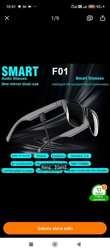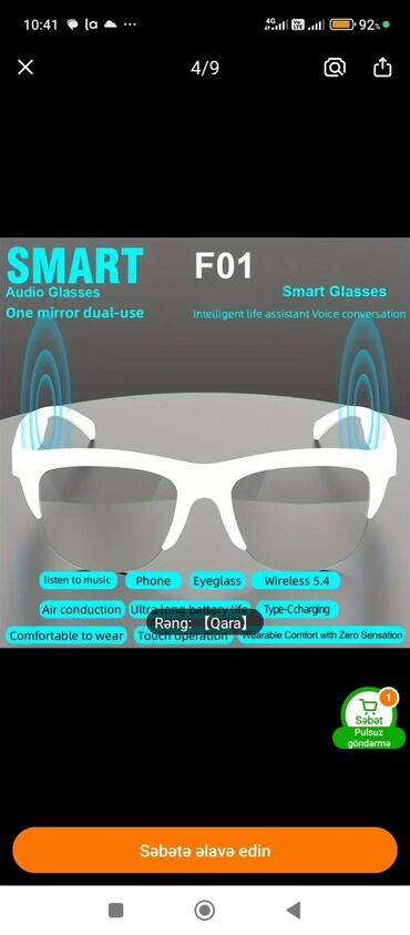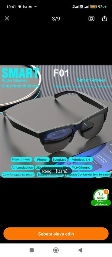 Ağıllı eynək. Blutuzla işləyən qulaqcıqlı eynək. Bütün model telefonları dəstəkləyir. Siz həm telefonla danışa bilərsiniz, həm də sosial şəbəkələrdə vaxtınızı keçirə bilərsiniz. Həm hərəkətdə olark...
