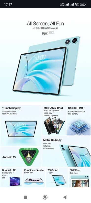 Göyçaydadır Teclast p50 tam yeni qutuda prosesor unisoc t606 8 nüvveli Ekran 90 hz 2 nömrə destekleyir oyunlarda fps yaxşıdır pubg hd qrafikinde 30 fps