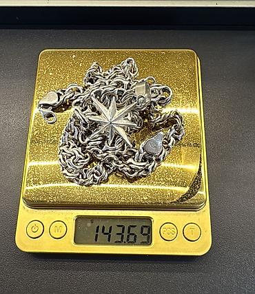 - Çəki: zəncir ~86.31 q; əlavə zəncir hissəsi/aksesuar ~49.65 q; ulduz formalı asma ~7.74 q