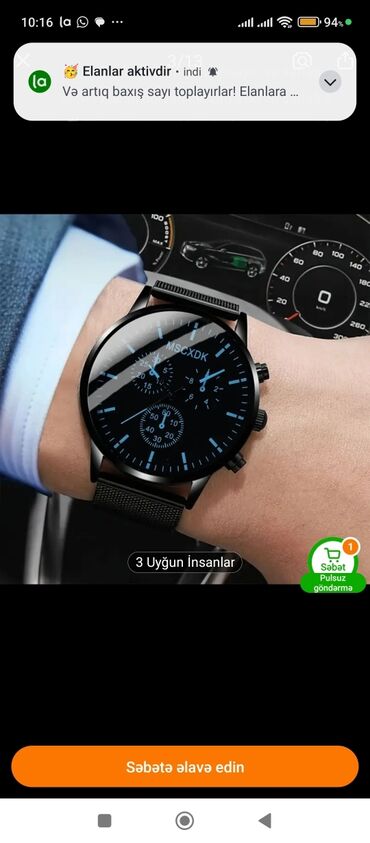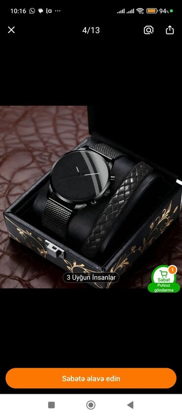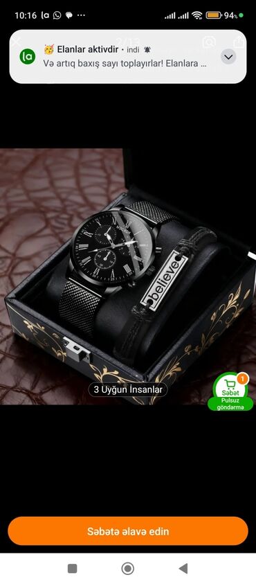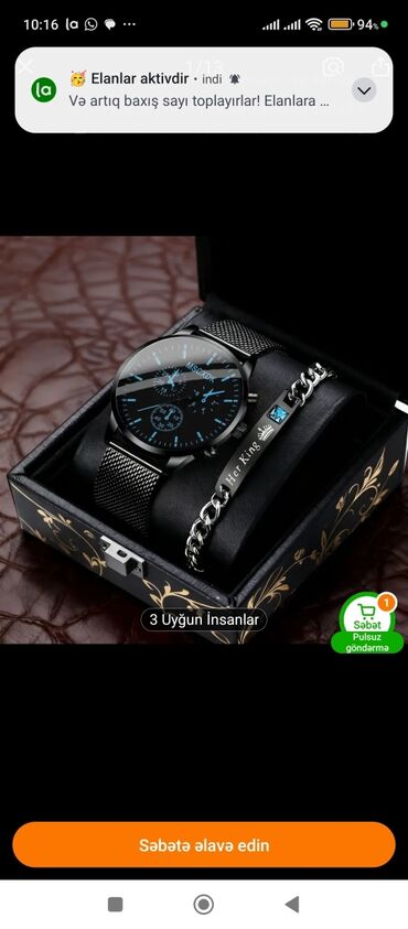 Kişilər üçün dəbli saat və bilərzik dəsti