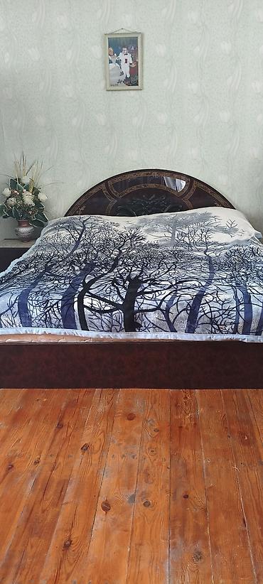 - Yataq: tünd qəhvəyi çarpayı, hündür dekorativ başlıqla, klassik oyma və ornamentlər. Stabil karkas.