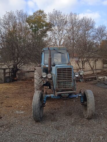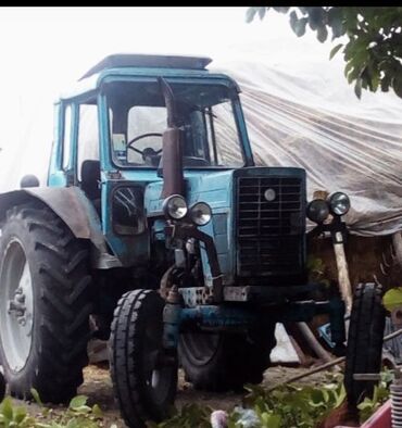 Mavi rəngli təkərli kənd təsərrüfatı traktoru