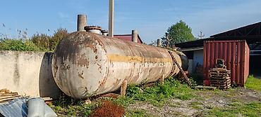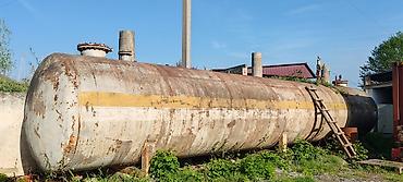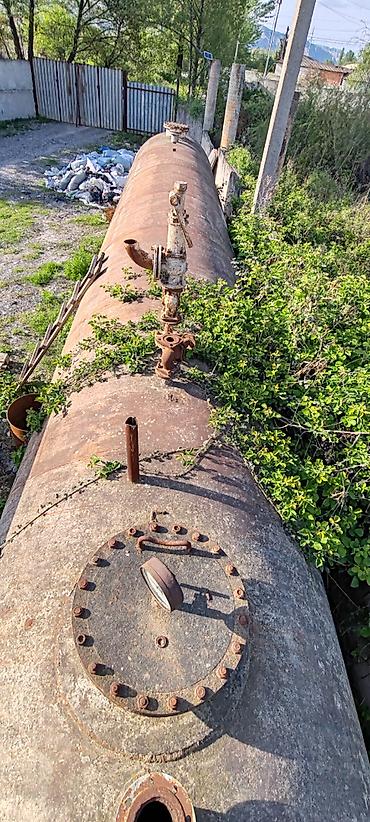 Metalkonstruksiyalı silindrik çən - Material: qalın divarlı metal (polad), qaynaq birləşmələri. - Ölçü: təxmini uzunluq 3–3,5 m; diametr 1–1,2 m (silindrik forma, qapaqlı). - Tutum: ölçülərə əsasə...