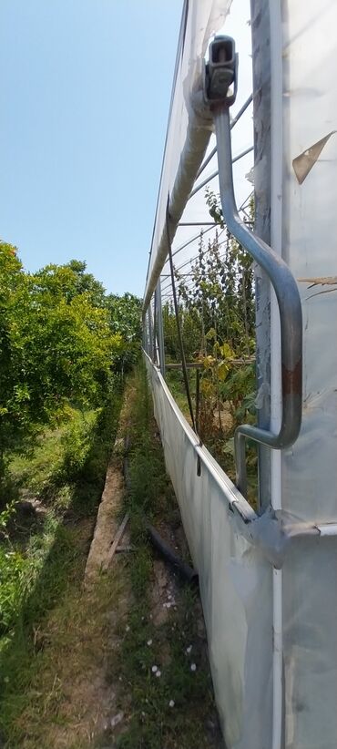 - Konstruksiya: yarımdairəvi (tunel tipli) metal karkas, möhkəm boru profillərdən yığılmış.