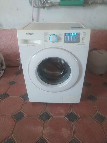 Samsung paltaryuyan maşın – ön yükləməli, Digital Inverter mühərrikli model. Ön paneldə LED ekran, iş rejimlərinin göstəricisi və işıqlandırılan proqram seçmə düyməsi var. Ekranda vaxt göstəricisi və proqram mərhələləri əks olunur.