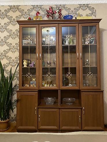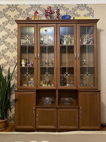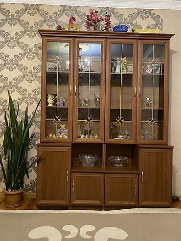 2 ededdir biri 40 azn Mebel dəsti – vitrindən və paltarsaxlama şkaflarından ibarət - Material: taxta/şpon üzlü, klassik dizaynlı, qəhvəyi tonlarda. - 1-ci modul: ikiüstlü vitrinli bufet. - Yuxa...