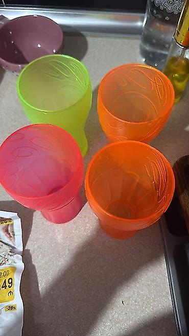 Rəngli plastik stəkanlar dəsti